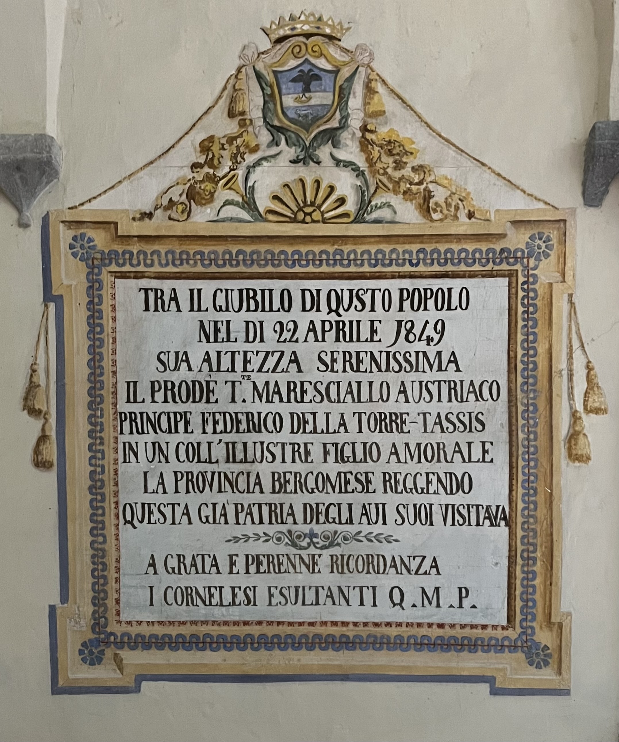 La visita di questo principe, imparentato alla lontana con il poeta Torquato Tasso (1544 – 1595), fu un evento raro per i Cornellesi, che vollero ricordare degnamente l’onore tributato al paese.