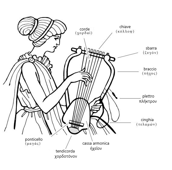 Oggi concentro la mia attenzione su uno strumento cordofono antico, citato da Orazio[2], il barbitos (βάρβιτος)[3].
